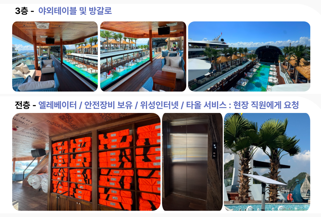 ● 악기상 또는 선박의 문제 등으로, 선상 숙박을 대신하여 하롱베이의 호텔 숙박이 제공된 경우에는 환불되지 않습니다.