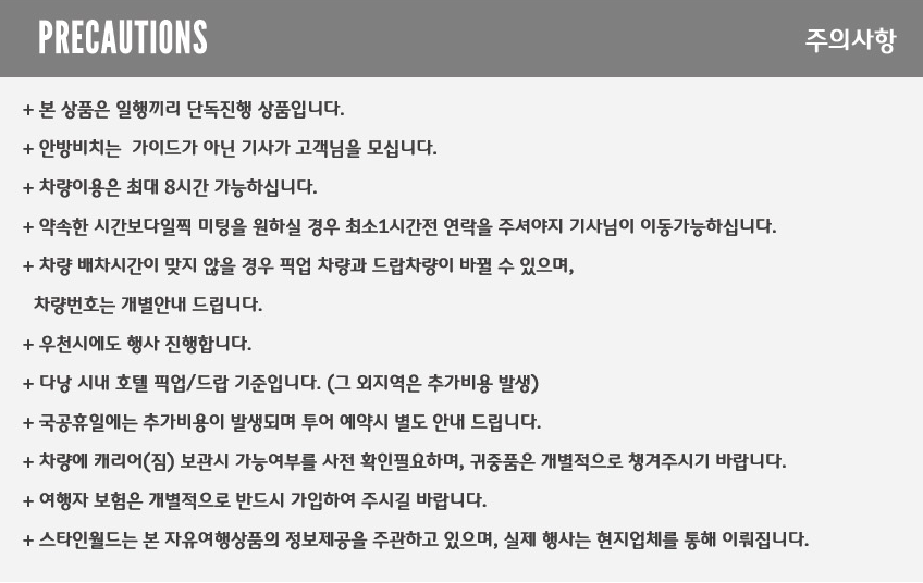 • 투어 상품은 예약 확정까지 최대 24시간 소요될 수 있으며, 미확정 시 취소 요청이 가능합니다.