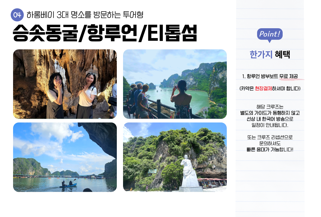 • 동굴투어는 일방통행입니다. 하선 후에는, 무조건 완주하셔야 합니다.