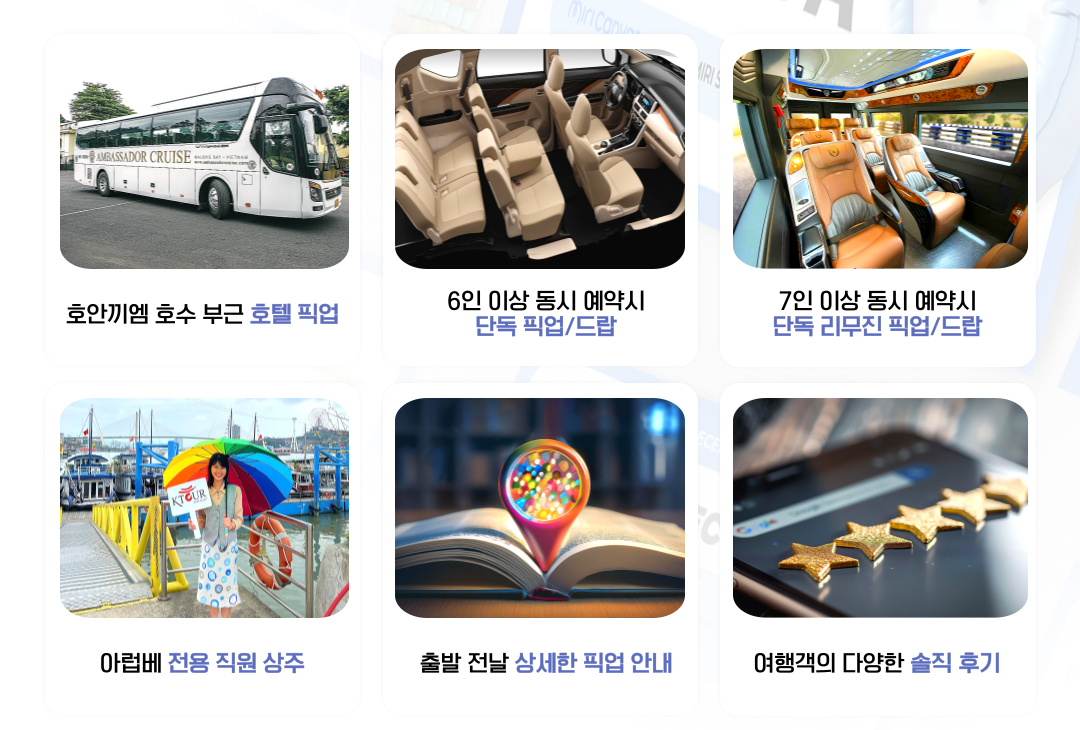 • 베트남 여행사 중 픽업 안내등을 가장 잘 드리는 여행사임을 자부합니다.