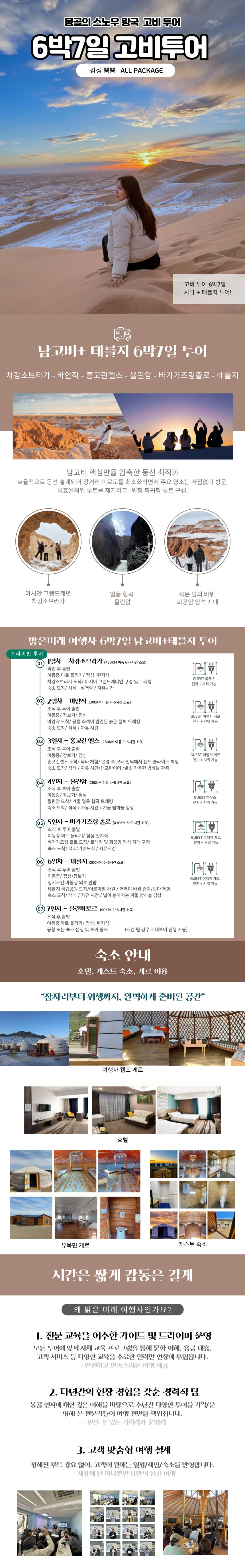 • 몽골 여행 전 국내(대한민국)에서 “여행자 보험” 가입을 권장합니다. (※ 본 상품은 여행자 보험 불포함)