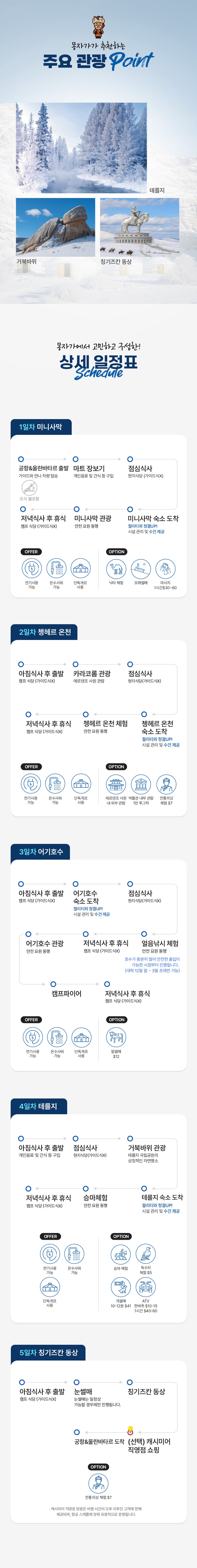 모래썰매,낙타,사막은하수,홉스골호수,무릉,허르헉,승마,캠프파이어,보트,볼강